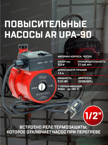 Насос повышающий давление AquaMotor AR-90 (0,09 кВт,35 л/мин напор 8.5м)/ АВТОМАТИЧЕСКИЙ НАСОС ПОВЫШЕНИЯ ДАВЛЕНИЯ