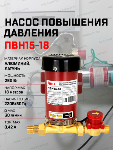 Насос повышающий давление с сухим ротором Jemix-18 (0,260 кВт,30 л/мин напор 18м)/ Автоматический насос повышения давления