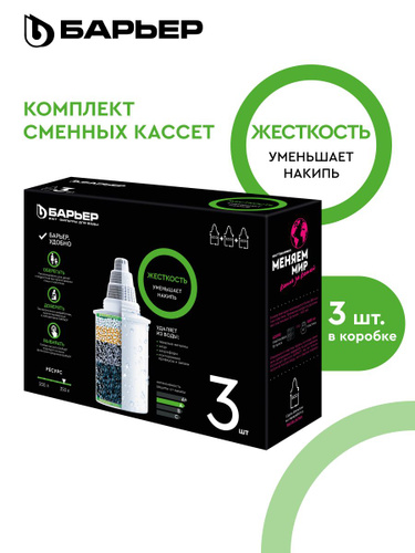 Фильтр для воды БАРЬЕР. Комплект кассет для фильтров-кувшинов Жесткость, 3 шт от накипи. Уцененный товар