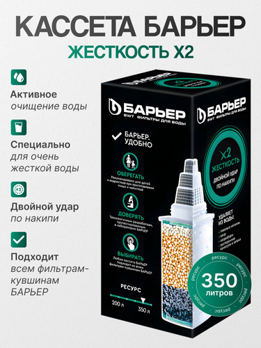 Фильтр для воды, кассета для фильтра-кувшина БАРЬЕР, модель Жесткость Х2, максимальная защита от накипи, улучшает вкус, ресурс 700 л, 2 шт