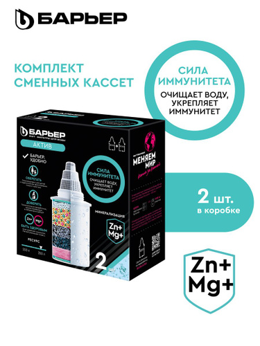 Фильтр для воды, комплект кассет для фильтра-кувшина БАРЬЕР, модель Жесткость и Актив Сила Сердца, усиленная защита от накипи, улучшает вкус, обогащает полезными минералами , ресурс 350 л, 4 шт
