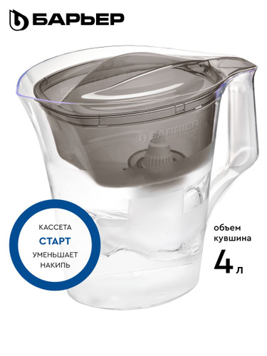Фильтр для воды кувшин БАРЬЕР Бриз XL, для большой семьи, предотвращает накипь, улучшает вкус, объем 4 л, ресурс 200 л, цвет антрацит, кассета Старт в комплекте