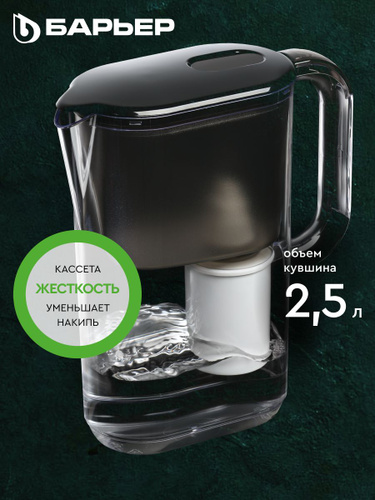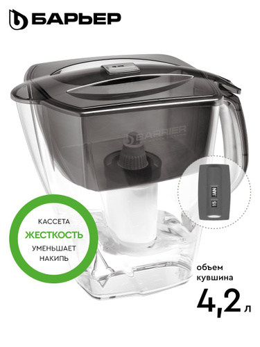 Фильтр для воды кувшин БАРЬЕР Гранд Нео XL, для большой семьи, предотвращает накипь, улучшает вкус, механический индикатор, объем 4,2 л, ресурс 350 л, цвет антрацит, кассета Жесткость в комплекте
