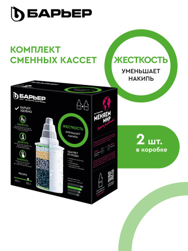 Фильтр для воды, комплект кассет для фильтра-кувшина БАРЬЕР, модель Жесткость, усиленная защита от накипи, улучшает вкус, ресурс 350 л, 2 шт