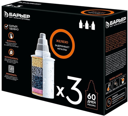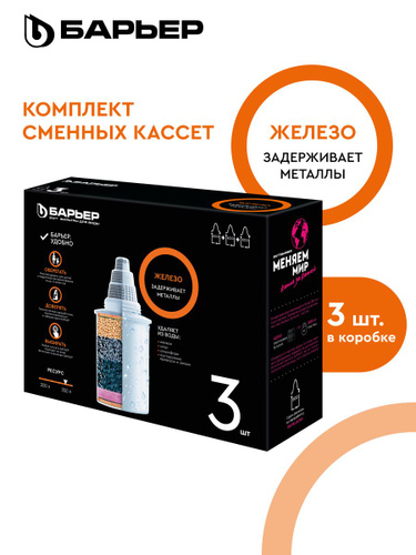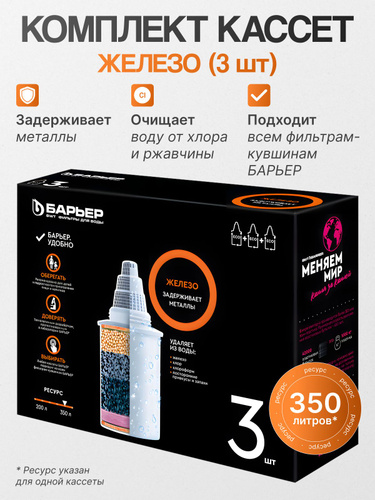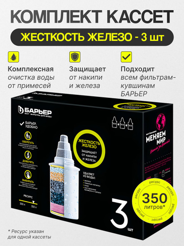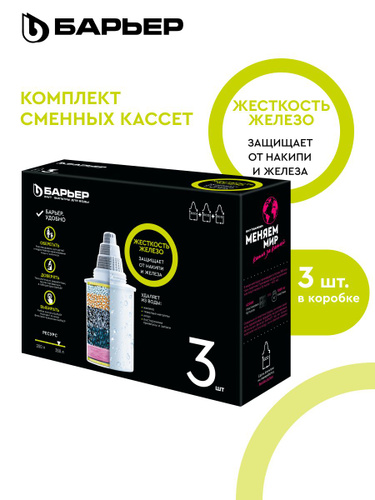 Фильтр для воды, комплект кассет для фильтра-кувшина БАРЬЕР, модель Жесткость Железо, усиленная защита от накипи, удаляет железо, улучшает вкус, ресурс 350 л, 3 шт