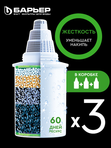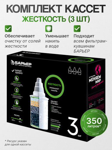 Фильтр для воды, комплект кассет для фильтра-кувшина БАРЬЕР, модель Жесткость, усиленная защита от накипи, улучшает вкус, ресурс 350 л, 3 шт