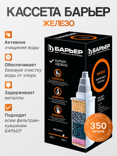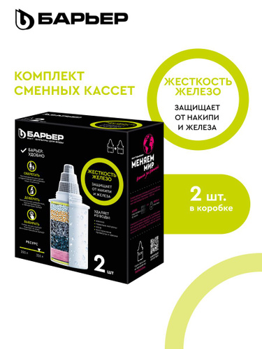 Фильтр для воды, комплект кассет для фильтра-кувшина БАРЬЕР, модель Жесткость Железо, усиленная защита от накипи, удаляет железо, улучшает вкус, ресурс 350 л, 2 шт
