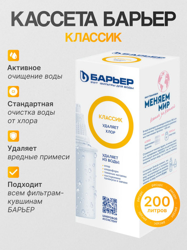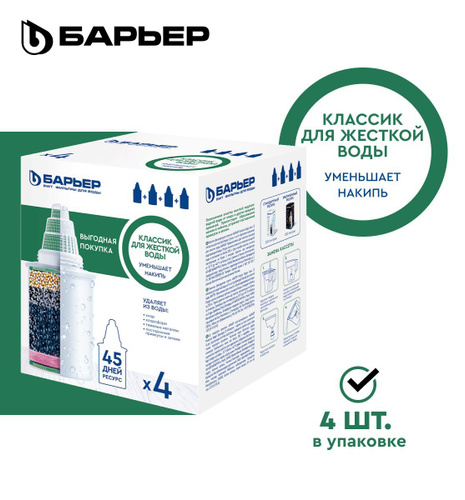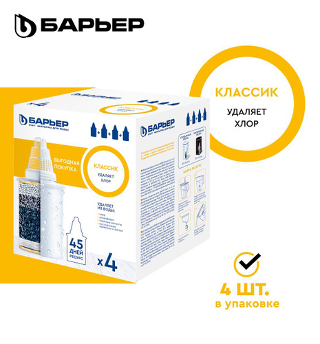 Фильтр для воды, комплект кассет для фильтра-кувшина, БАРЬЕР, модель Классик, усиленная защита от хлора, улучшает вкус, ресурс 200 л, 4 шт