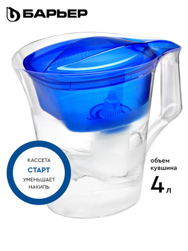 Фильтр для воды кувшин БАРЬЕР Бриз XL, для большой семьи, предотвращает накипь, улучшает вкус, объем 4 л, ресурс 200 л, цвет синий, кассета старт в комплекте