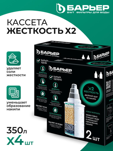 Фильтр для воды, кассета для фильтра-кувшина БАРЬЕР, модель Жесткость Х2, максимальная защита от накипи, улучшает вкус, ресурс 1400 л, 4 шт