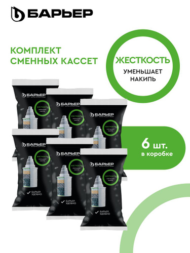 Фильтр для воды, комплект кассет для фильтра-кувшина БАРЬЕР, модель Жесткость, усиленная защита от накипи, улучшает вкус, ресурс 350 л, 6 шт