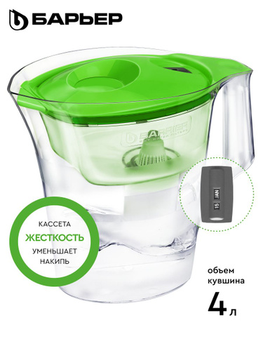 Фильтр для воды кувшин БАРЬЕР Чемпион XL, для большой семьи, предотвращает накипь, механический индикатор, объем 4,2 л, ресурс 350 л, цвет зеленое яблоко, кассета Жесткость в комплекте