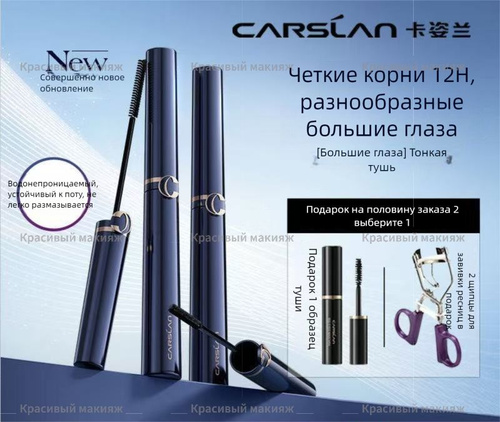 Тушь для ресниц CARSLAN 2-в-1 Big Eye Mascara, водостойкая, не размазывается, придает объем, удлиняет ресницы, держится 24 часа