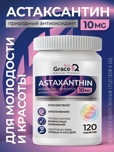 Астаксантин натуральный в таблетках 10 мг для глаз, красоты, молодости и иммунитета, 120 таблеток