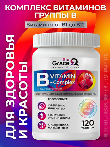 Витамины группы В комплекс GraceBioQ, витамины группы b для женщин и мужчин / b complex 120 таблеток