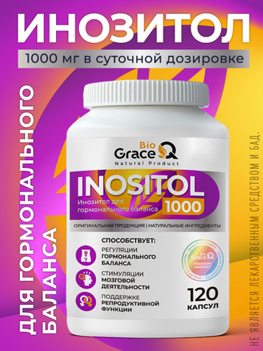 Инозитол 1000 мг суточной дозировки для гормонального баланса, 120 каспул