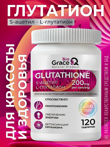 Глутатион 200 мг/ Ацетил глутатион/S-ацетил-L-глутатион/ Витамины для женщин/ против старения, для кожи, от прыщей, укрепление иммунитета и очищение печени, детокс