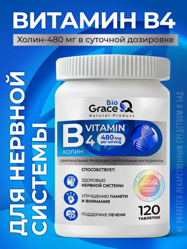 Витамин В4 в таблетках, холин 480 мг в суточной дозировке, холина битартрат 120 таблеток