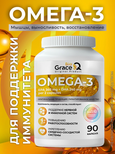 Омега-3 Рыбий жир / Жирные кислоты / Омега GraceBioQ капсулы 1000 мг