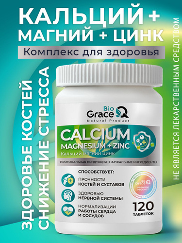 Кальций Магний Цинк для костей, суставов, зубов, иммунитета, 120 таблеток