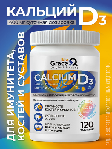 Кальций Д3 GraceBioQ для укрепления костей, волос, ногтей 120 таблеток