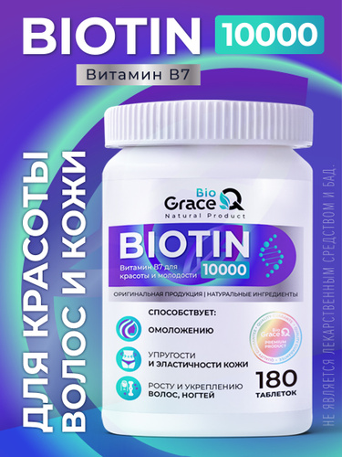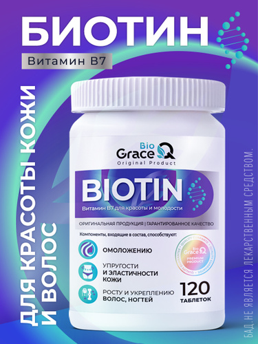 Биотин для волос GraceBioQ / Витамины В7 для роста и от выпадения волос для женщин и мужчин, 120 таблеток