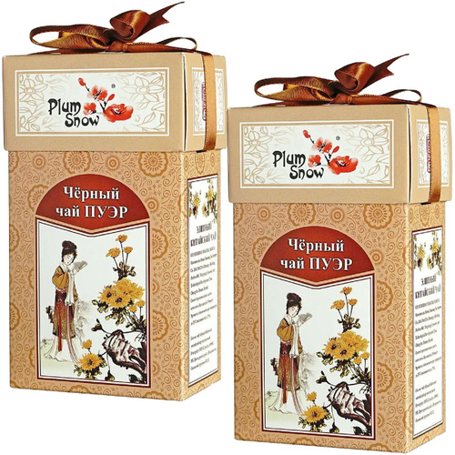 Чёрный чай ПУЭР 200 гр / Plum Snow (элитный китайский) / Плам Сноу (2 шт по 100 гр), листовой