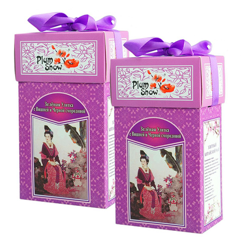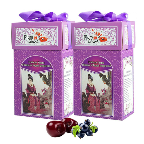Plum Snow / Чай зеленый листовой "Зеленая Улитка с Вишней и Черной Смородиной" (2 шт. по 100 гр) / Элитный китайский чай