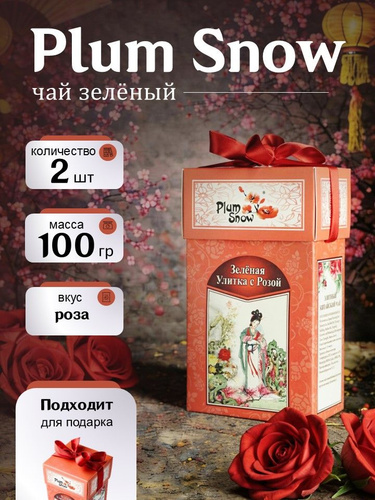 Чай Зеленый листовой Plum Snow Зеленая Улитка с розой картон 100 грамм 2 шт