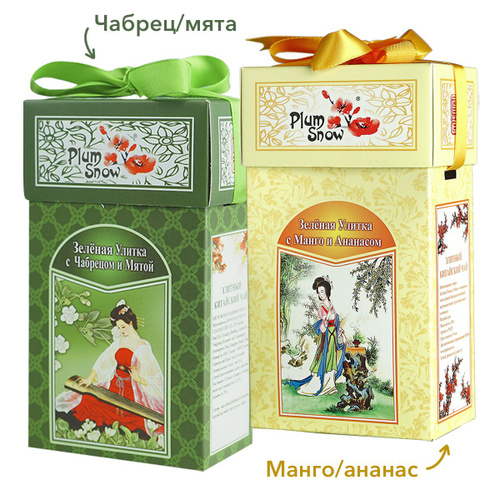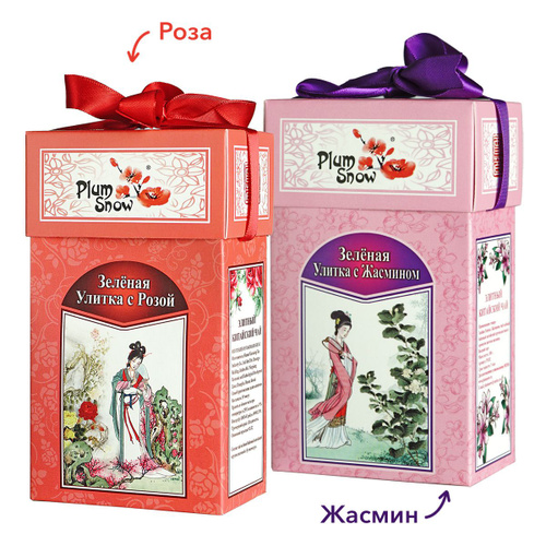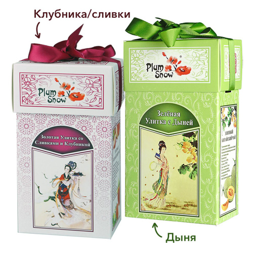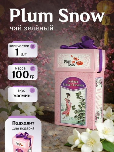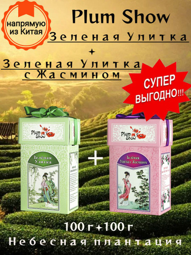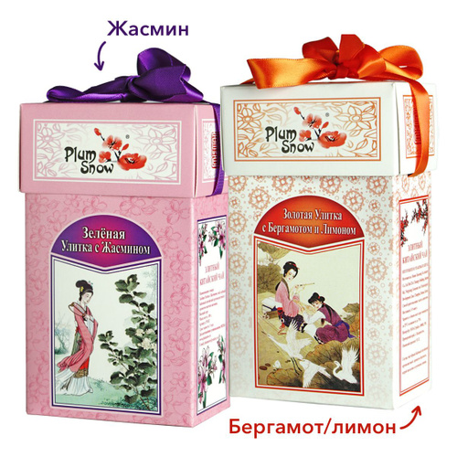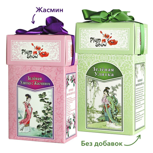 Чай Plum Snow Зеленая улитка 100г + зеленый с жасмином 100г