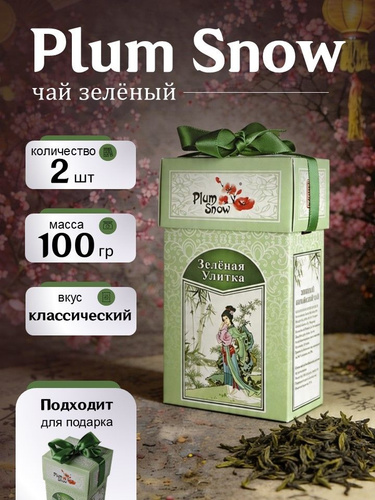 Чай Зеленый листовой Plum Snow Зеленая Улитка картон 100 грамм 2 шт