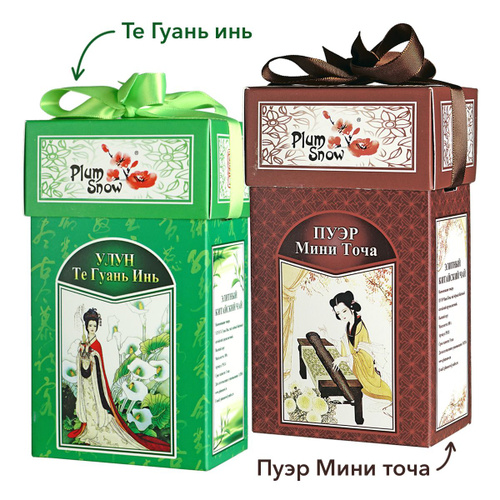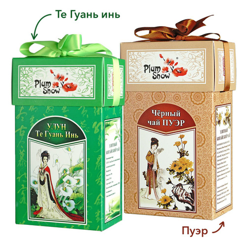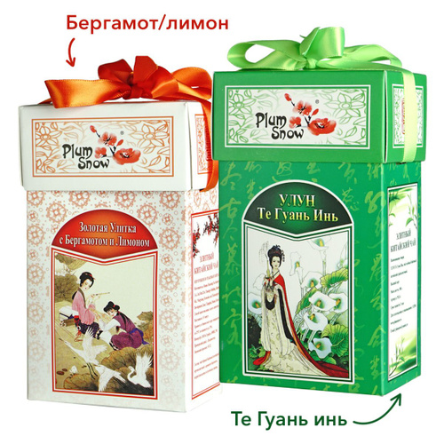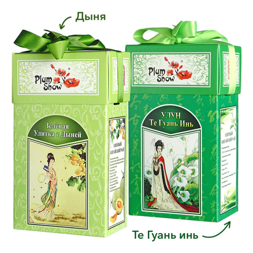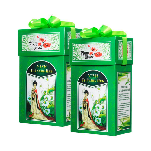 Улун Те Гуань Инь 200 гр (зелёный чай) / Plum Snow (элитный китайский) / Плам Сноу (2 шт по 100 гр), листовой