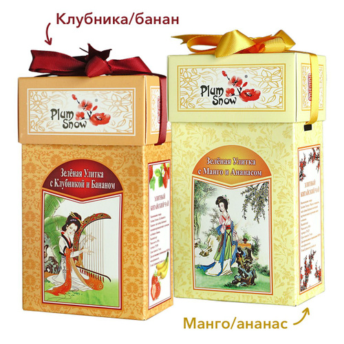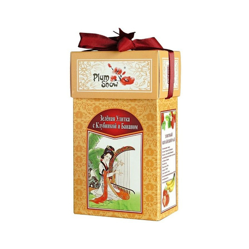 Зелёная улитка с Клубникой и Бананом 100 гр (зелёный чай) / Plum Snow (элитный китайский) / Плам Сноу (1 шт по 100 гр), листовой