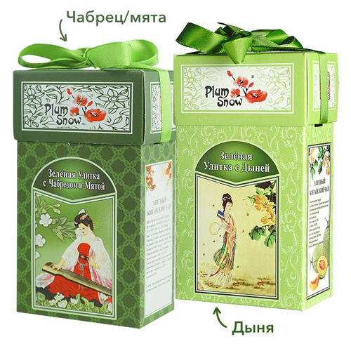 Зелёная улитка с Дыней 100 гр (зелёный чай) / Plum Snow (элитный китайский) / Плам Сноу (1 шт по 100 гр), листовой