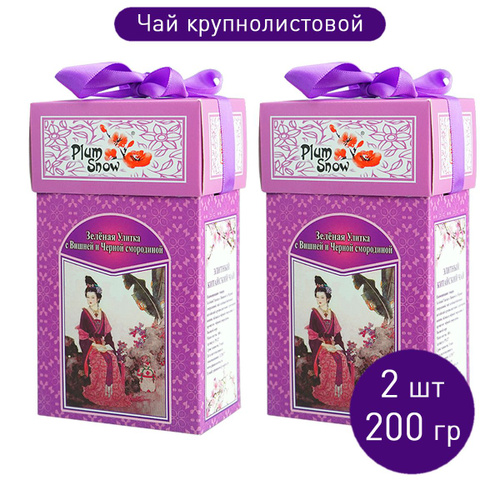Чай листовой "Зеленый чай с Вишней и Черной Смородиной" (2 шт x 100 г) Plum Snow (Рассыпной/Крупнолистовой), 200 г