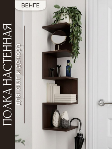 Porfiruma Полка Настенная Угловая, 25х25х95 см, 1 шт.