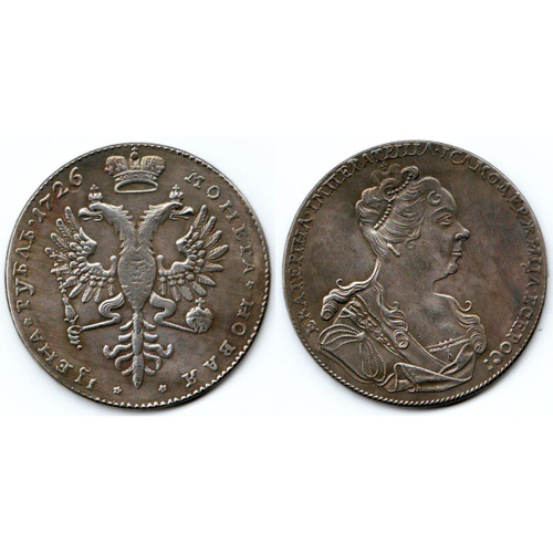 Монета Рубль 1726 года портрет Екатерины вправо московский тип
