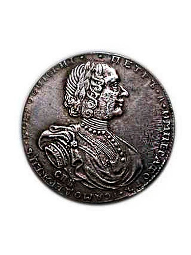 Монета 1 рубль 1725 года СПБ "Император Петр l" рукав полосы