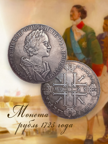 Монета рубль 1725 года ОК, Петр 1, сувенирная