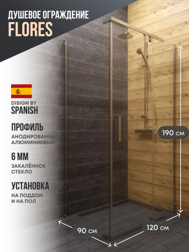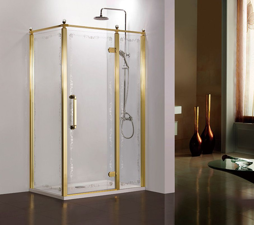 Душевое ограждение Azario ONTARIO 900х1200х2000 L, без поддона, прозрачное стекло 8 мм с узором, цвет профиля золото глянцевое (AZ-NBB1231-L 900 GOLD)