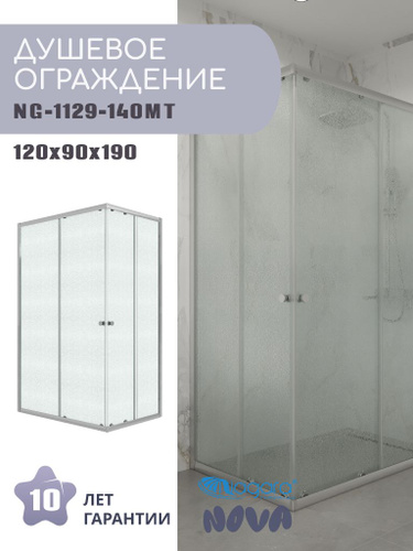 Душевое ограждение Niagara Eco NG-1129-14QMT (120х90х190) прямоугольник,раздвижное,хром,стекло матовое,1 место
