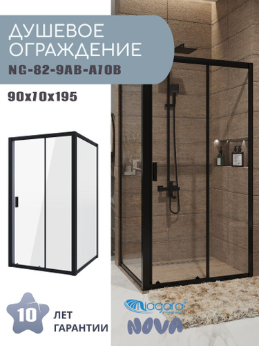 Душевое ограждение Niagara Nova NG-82-9AB-A70B (90х70х195) прямоугольник,черный, дверь раздвижная,стекло прозрачное,2 места