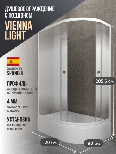 Душевое ограждение со средним поддоном Belgranio Vienna Light 1200*800 левое, профиль белый, стекло матовое