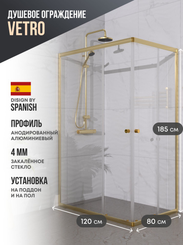 Душевое ограждение Belgranio Vetro 1200*800 профиль золото, стекло прозрачное