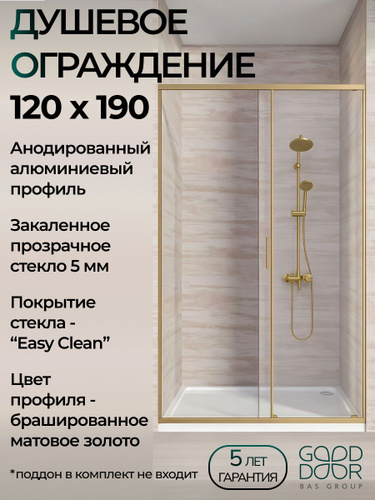 Душевое ограждение LITE WTW-120-C-BG GoodDoor 120х190, матовое золото, стекло прозрачное 5 мм