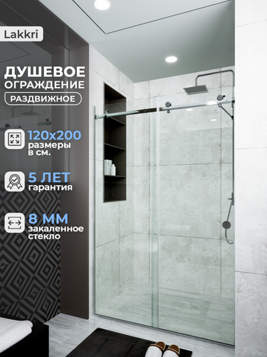Lakkri / Откатное душевое ограждение 120х200см, раздвижная душевая кабина, откатная дверь/ширина проема от 117 до 122см. Цена с НДС.