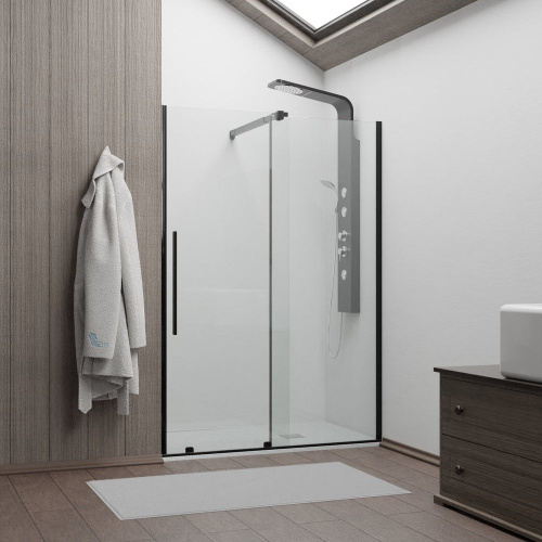 Душевая дверь RGW TO-18B 1200х1950 мм. Стекло прозрачное, профиль черный. Ориентация: универсальная.