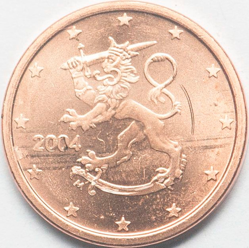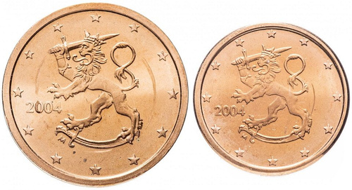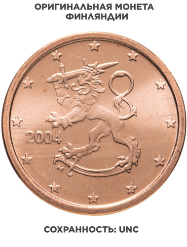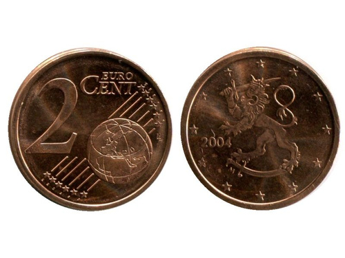 2004, 2 монеты, 1 и 2 цента Набор монет Евро Финляндия 2004 год UNC