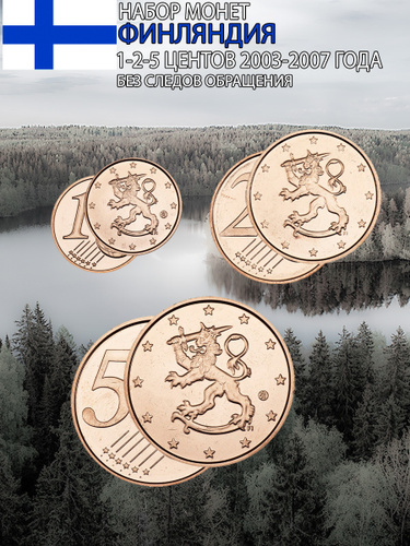 Финляндия набор монет 1, 2, 5 центов 2003-2007 год UNC
