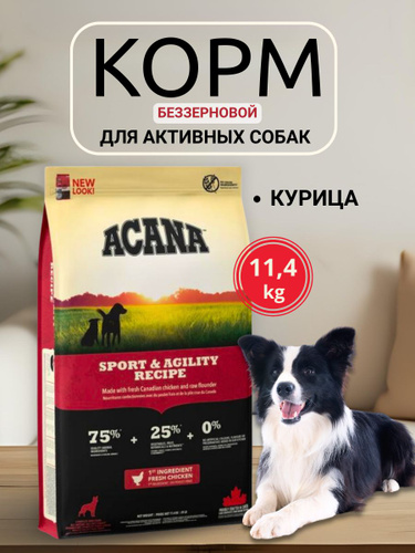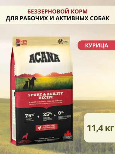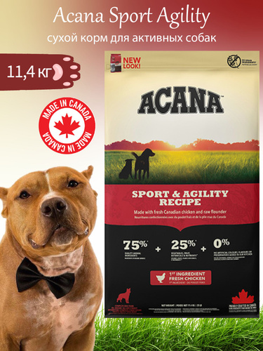 Acana Sport Agility (75/25) 11,4 кг беззерновой корм для активных собак, цыпленок, индейка и сельдь
